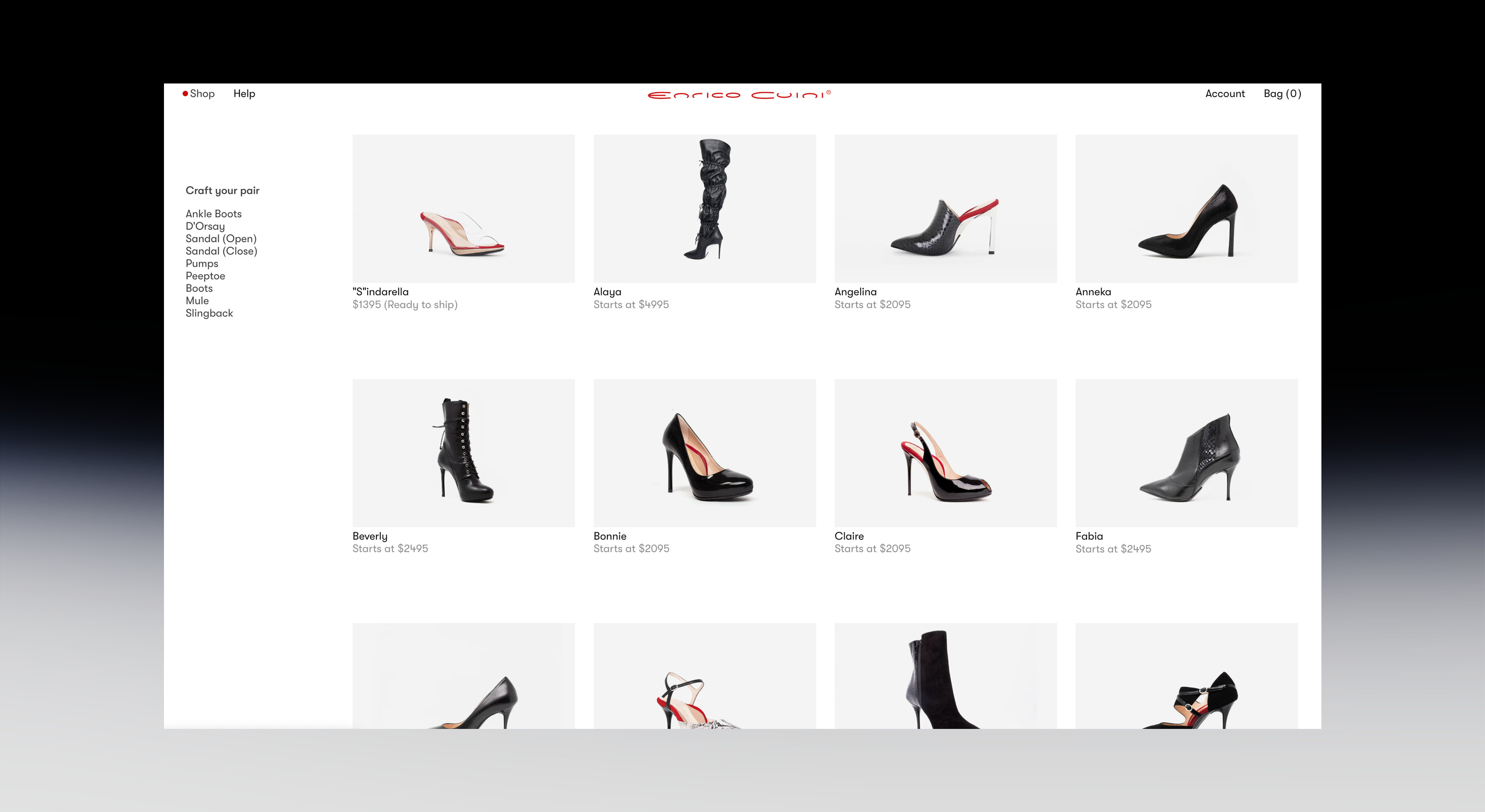 Brand identity and shopify store for Italian shoe brand Enrico Cuini.