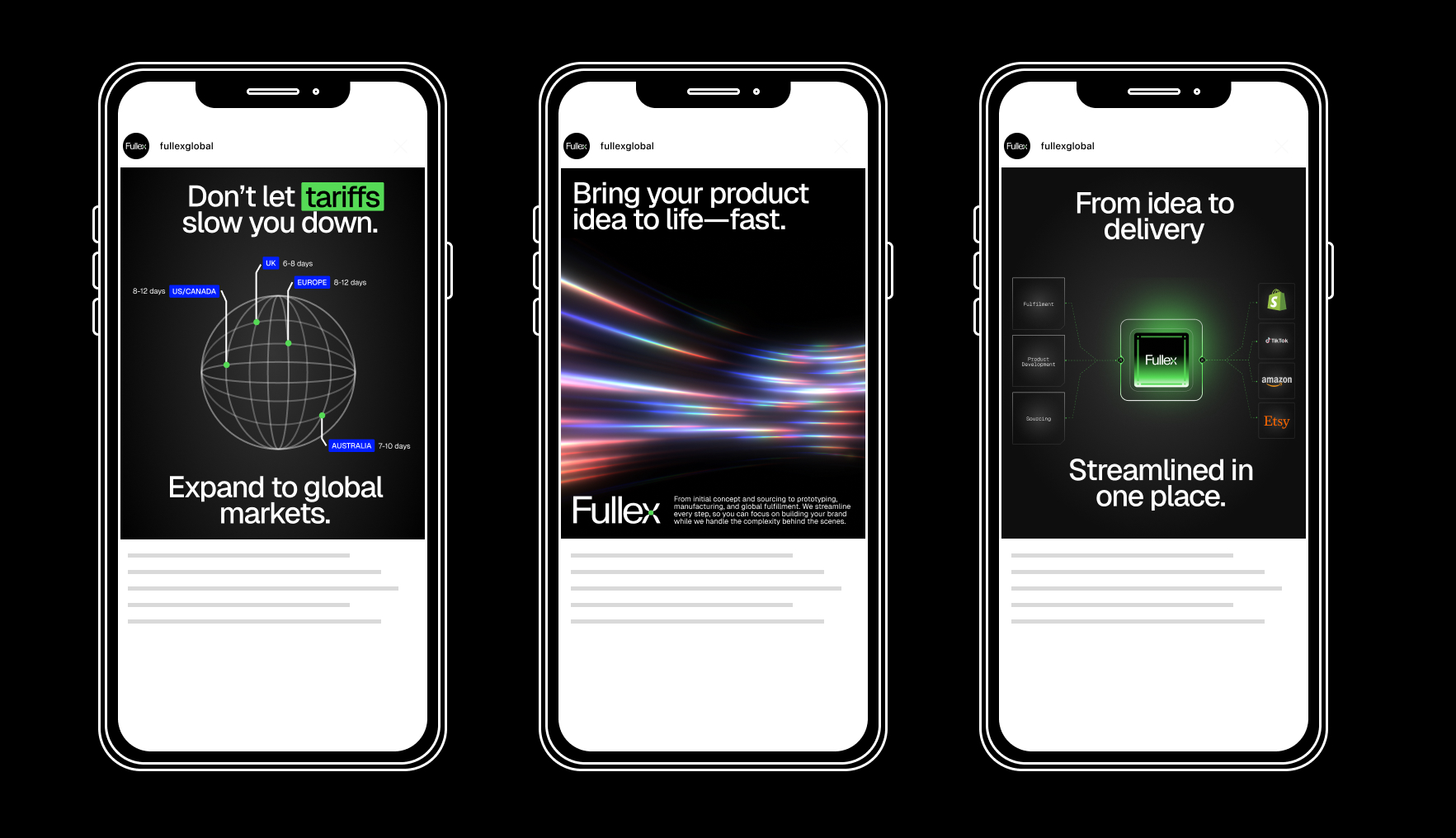 Brand design and web for Fullex - Unifying sourcing, product development, and fulfillment into a single, seamless solution.